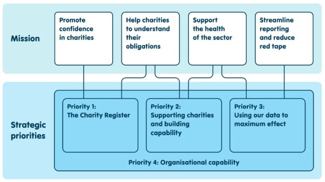 | Sustaining the charity sector | We need to ensure that the services we provide are timely and accurate to facilitate a strong and robust charity sector. | We use consultation and advisory forums to ensure our guidance is relevant and useful. We use a range of channels to deliver information to support charities. |