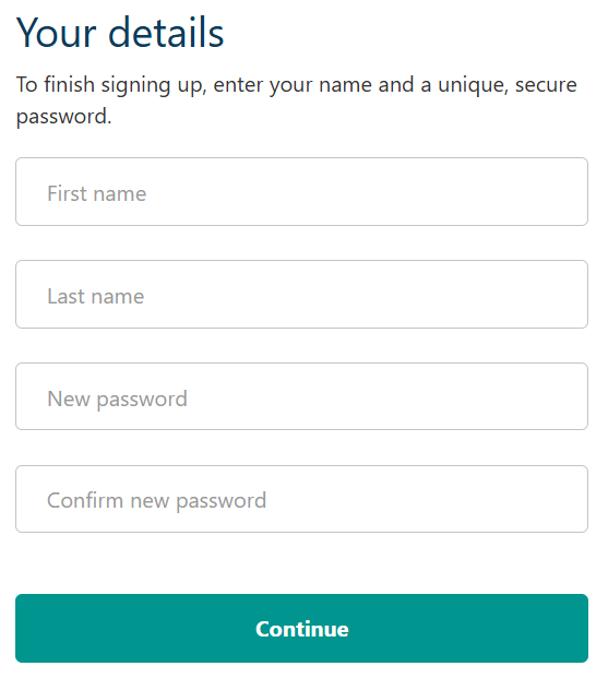 You will need to type your password twice to confirm it. Your password needs to be at least 10 characters long, and contain at least 3 of the following: