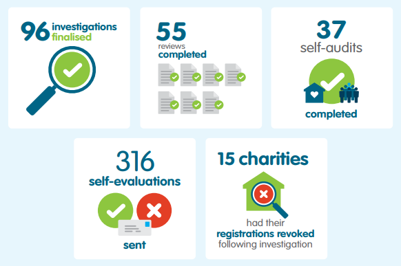 To support that end, in the last 12 months we checked thousands of charity records to ensure charities were maintaining their charitable purposes and entitlement to registration. Where we identified risks, we contacted charities to provide them with assistance to address the issues.