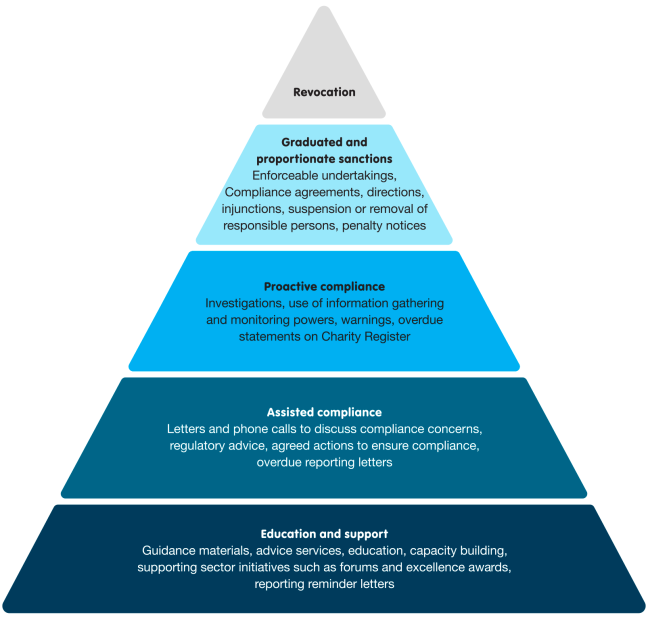 The team uses a combination of guidance and investigative methods to address non‑compliance and support charities in meeting their obligations. When the team finds that a charity has been involved in serious or deliberate non‑compliance, it may use its enforcement powers or revoke the charity’s registration.