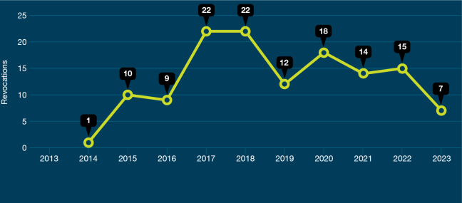 Annual compliance revocations by financial year