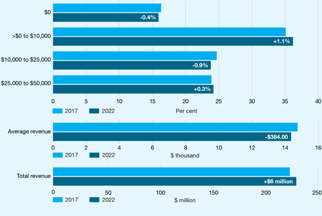 This report also focuses on extra small charities (those with revenue less than $50,000) because they comprise nearly a third of all Australian charities. We look at how extra small charities fared in 2022 compared with 2017.