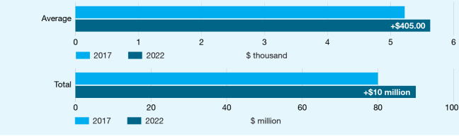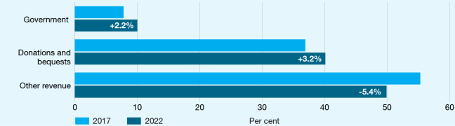 Donations grew by 4.4% in 2022. This was lower than the 5.3% increase in donations reported in 2021. For this reporting period, donations and bequests totalled $13.9 billion, an increase of more than $584 million over 2021 figures.