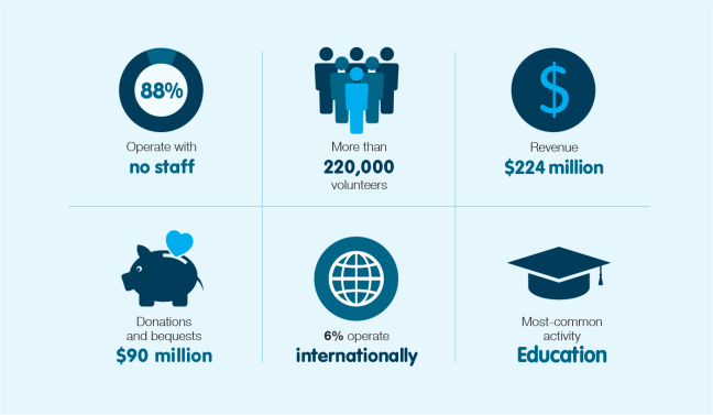 Extra small charities – those with annual revenue of $50,000 or less – are a focus for this report because they comprise nearly a third of all Australian charities.