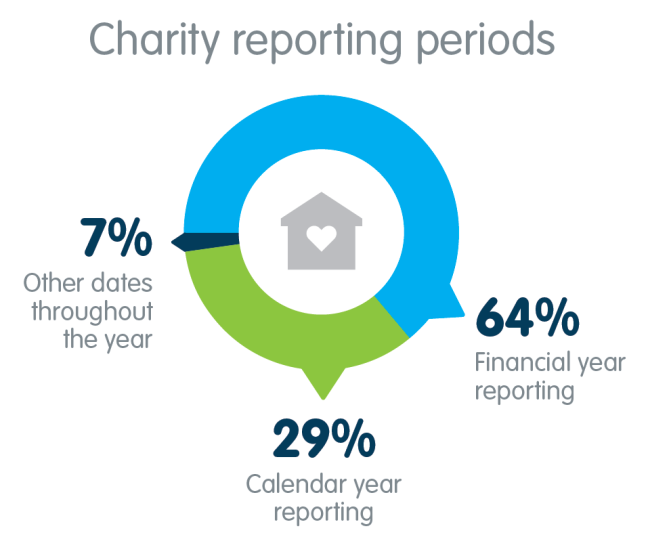 - 3,650 charities (7%) had reporting periods that ended on other dates throughout the year.