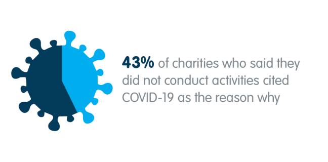 In the 2021 Annual Information Statement, more than 860 of these charities – 43% of all charities who said they did not conduct activities – cited COVID-19 as the reason why.