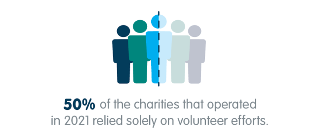 Volunteers continue to underpin the work of the sector and 50% of charities operate with no paid staff.